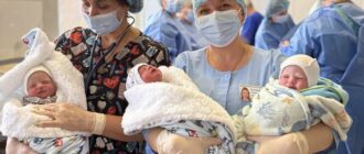 Трійня з’явилася на світ у Миколаєві: родина херсонців виховує вже сімох дітей Новонароджена трійня хлопчиків на руках у працівниць пологового, 14 листопада 2025 року, Миколаїв. Facebook: Новини Миколаєва