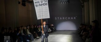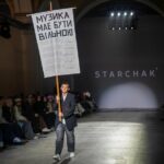 Колишній військовополонений морпіх вийшов на подіум Ukrainian Fashion Week Андрій Герасимов йде з високим банером на дерев’яному держаку. На банері написано: “Музика має Новини Миколаєва