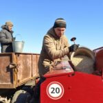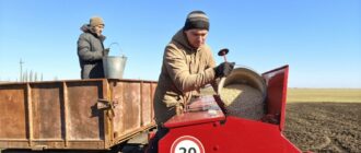 Засіяли горохом перші 20 гектарів: фермери на Миколаївщині розпочали весняну сівбу Працівник висипає насіння із металевого відра в бункер сівалки, що стоїть у полі. Суспільне Новини Миколаєва