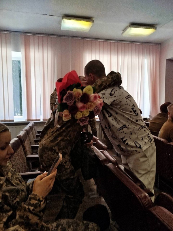 "Прийшов з квітами одразу до мене. У білих штанах, як наречений. Обняв, руки тремтять і в мене, і в нього. Він не повірив, коли запитав, чим я займаюсь, сказала, що зараз я військова, як і ти, в принципі. Каже: "Ну добре, а серйозно?" Я йому: "Це не жарт", він: "Ну ладно, ми про це поговоримо потім", — говорить вона.