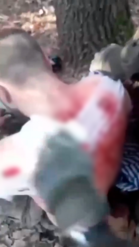 "Чую — техніка. Повертаю голову, бачу — русаки йдуть. Кричать мені: "Вставай". Кажу, якби я міг, я б встав. Перша думка, що мені відріжуть голову просто. Я взагалі "поплив" морально, думаю, пиз**ць. Ні, вони підійшли, надали мені повністю медичку всю. Відео в інтернеті гуляло, я там сиджу, вони мене перемотують, каже: "Где ваши?" Я кажу: "Я *бу". Просто я не знав, що йому казати". Пораненого миколаївського військового Станіслава перев’язує армієць РФ Скриншот з відео