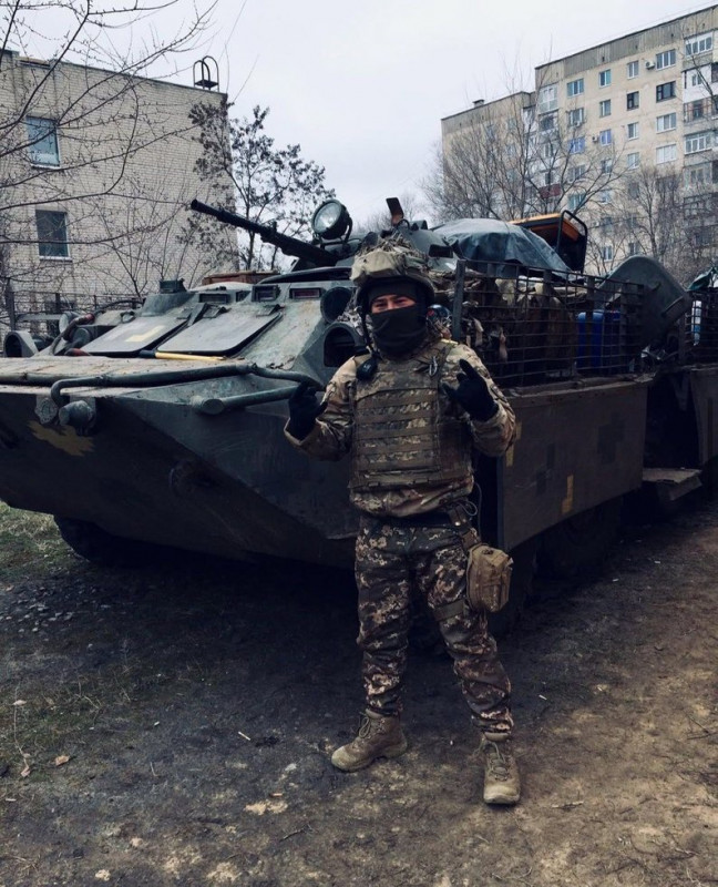 Військовослужбовець Станіслав на псевдо Циган поруч з танком під час служби. З особистого архіву нареченої захисника Катерини