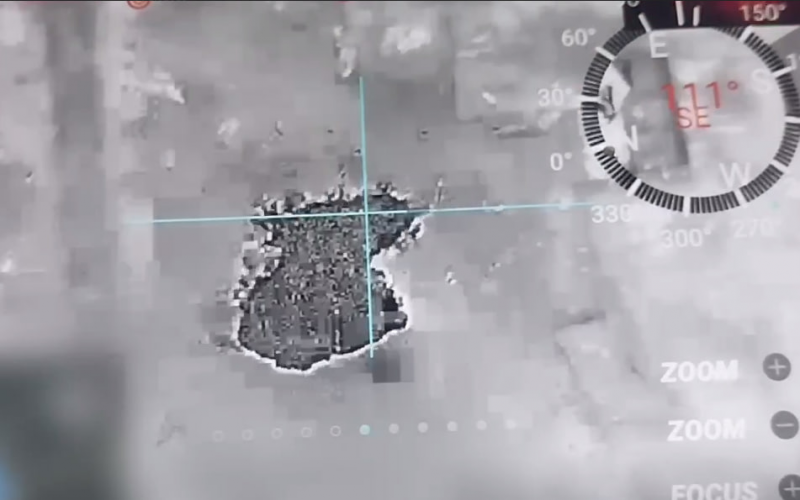 Вибухівка, що летить у місце, де перебували російські військові. Скрин з відео/79-та бригада