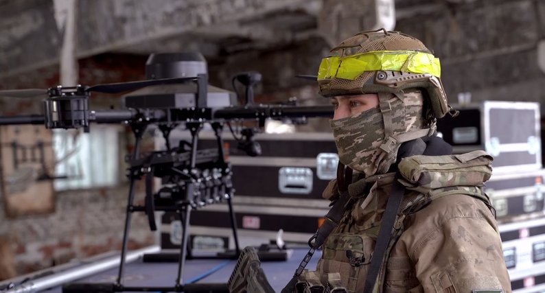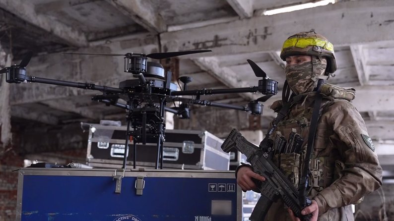 Військовослужбовець миколаївської 79-ї ОДШБр поруч з дроном. скрин з відео/79-та бригада
