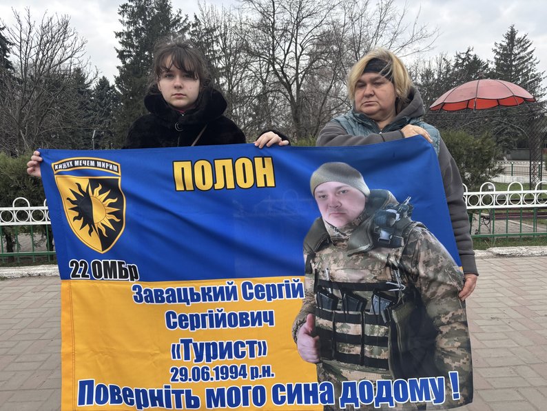 Інша учасниця акції Олена разом із донькою Дариною прийшли нагадати про свого сина та брата Сергія Завацького. До повномасштабного вторгнення чоловік відслужив строкову службу, а потім працював на будівництві доріг.