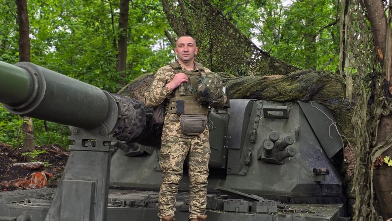 Герой України та майор ЗСУ Микола Чобану стоїть поруч із САУ. Особистий архів Миколи