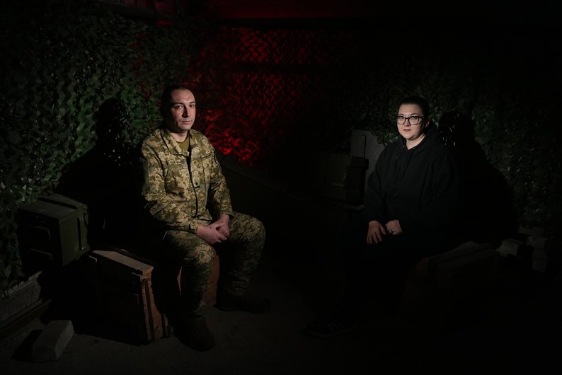 Герой України та майор ЗСУ Микола Чобану та журналістка “Суспільне Миколаїв” Валентина Гурова. Суспільне Миколаїв/Юлія Філімон