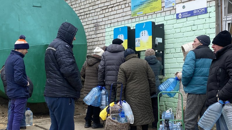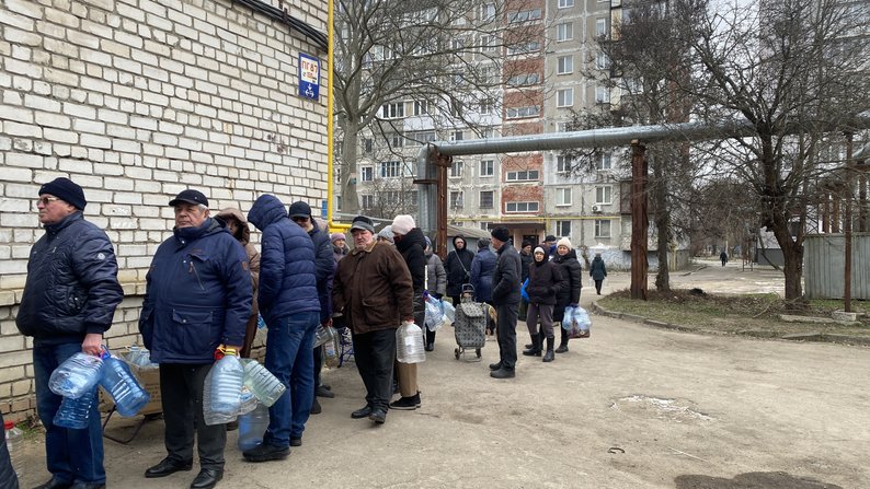 Люди стоять в черзі за водою. Суспільне Миколаїв/Аліна Ковальчук