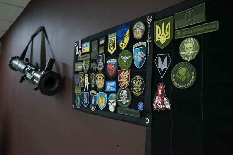На стіні патч-борд для шевронів, їх залишають клієнти.
