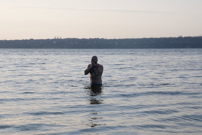 Віталій виходить з холодної води. Суспільне Миколаїв/Юлія Голокоз