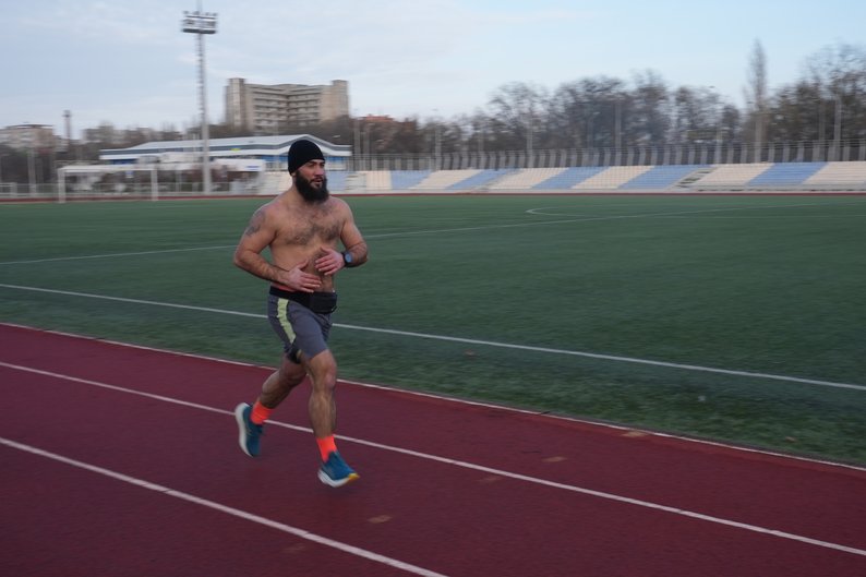 "Може хтось також захоче пробігтись або піти просто походити, позайматись якимось спортом, подихати свіжим повітрям. І так, я вже третю зиму бігаю на голому торсі. Я загартовуюсь, вважаю, що це додає мені здоров'я, а не віднімає його. Я менш вразливий до всяких хвороб", — пояснює бігун.