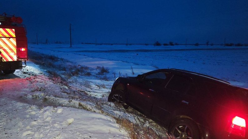 Рятувальники витягують авто з кювету. Головне управління ДСНС Миколаївщини Протягом минулої доби рятувальники шість разів допомагали людям через негоду на дорогах на Миколаївщині. Зокрема, транспортували хворих та витягували машини.