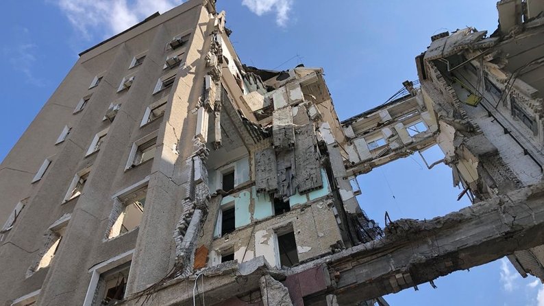 Ракета обвалила центральну секцію, зруйнувавши з дев’ятого по перший поверх. Суспільне Миколаїв/Валентина Гурова