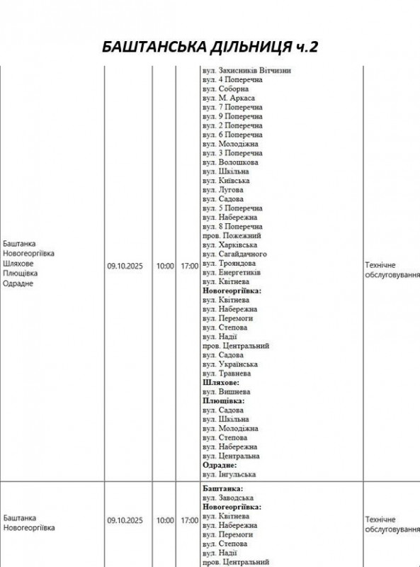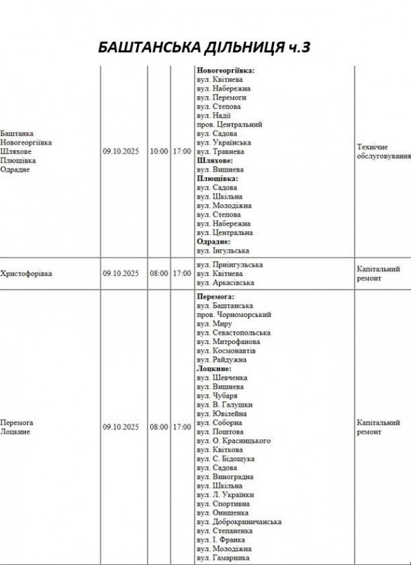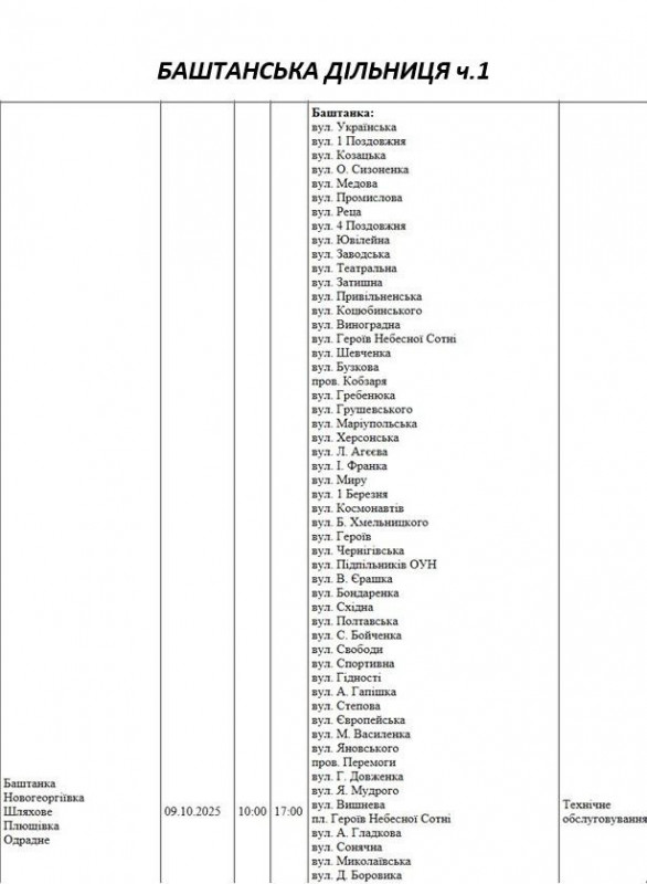 Баштанська дільниця Графік відключення світла на Миколаївщині АТ “Миколаївобленерго”