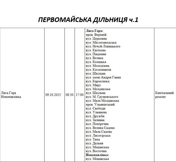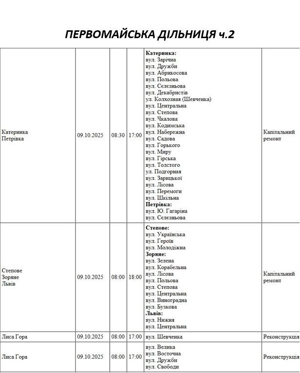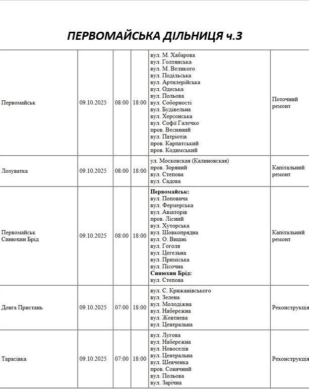 Первомайська дільниця Графік відключення світла на Миколаївщині АТ “Миколаївобленерго”