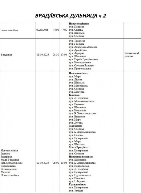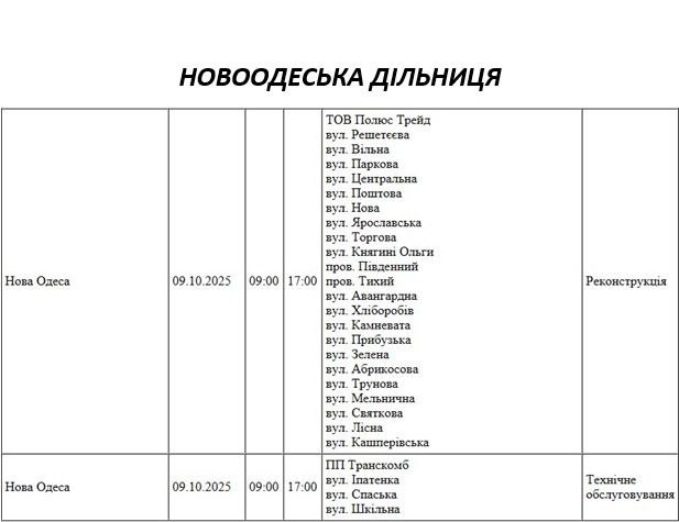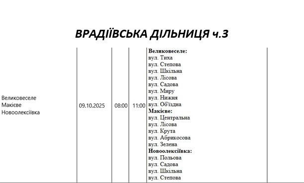 Врадіївська дільниця Графік відключення світла на Миколаївщині АТ “Миколаївобленерго”