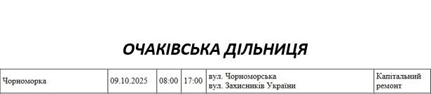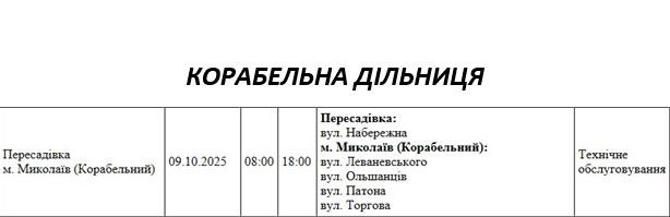 Миколаїв, Варварівська та Корабельна дільниці Графік відключення світла на Миколаївщині АТ “Миколаївобленерго”