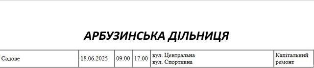 Графік відключення світла по адресах 18 червня, Арбузинська дільниця. АТ “Миколаївобленерго”
