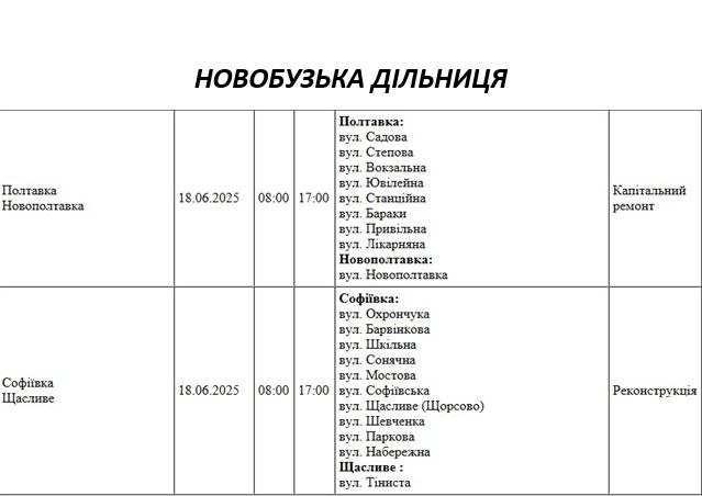 Графік відключення світла по адресах 18 червня, Новобузька дільниця. АТ “Миколаївобленерго”