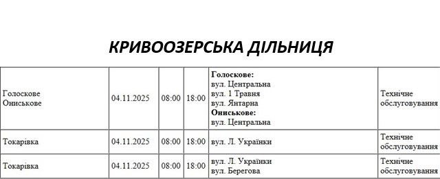 Графік відключення світла по адресах на 4 листопада, Кривоозерська дільниця АТ “Миколаївобленерго”