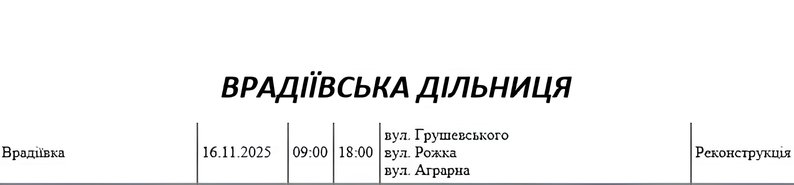 Декілька вулиць залишаться без світла на Миколаївщині 16 листопада: графік планових робіт 15.11.2025 Графік відключення світла по адресах 17 листопада, Врадіївська дільниця. АТ “Миколаївобленерго” Джерело