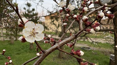 Гілка фруктового дерева . Суспільне Миколаїв/Юлія Голокоз У Миколаєві та області протягом 4 квітня очікується хмарна погода з проясненнями, йтиме короткочасний невеликий дощ. Температура повітря становитиме до +21°C, а вночі впаде до +7°C.