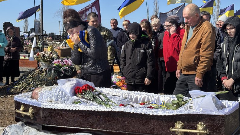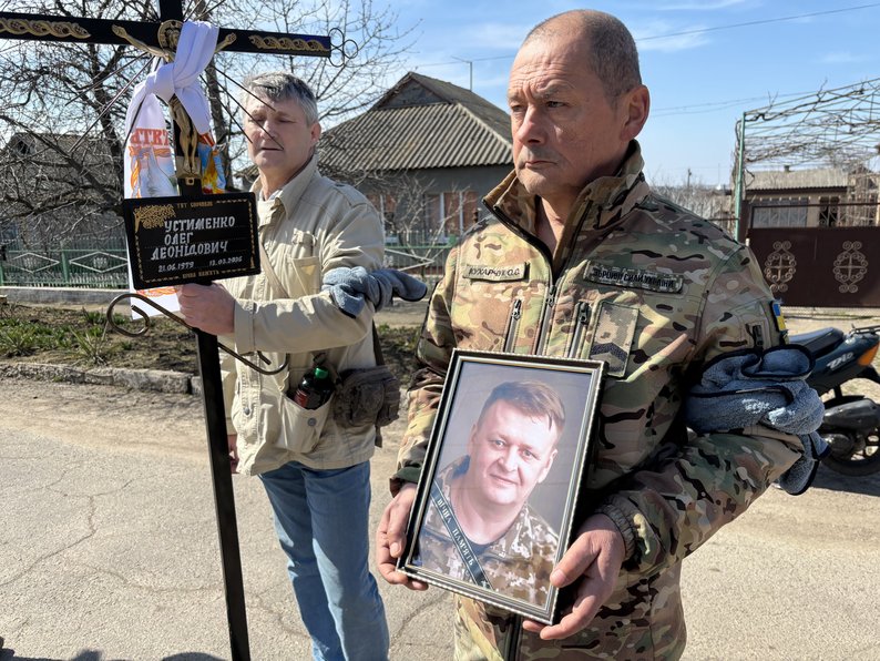 Прощання із військовим Олегом Устименком. Суспільне Миколаїв/Олена Гнатенко У селищі Доманівка на Миколаївщині провели в останню путь військовослужбовця Олега Устименка. Захисник загинув 13 березня 2026 року під час виконання завдання на Дніпропетровщині.