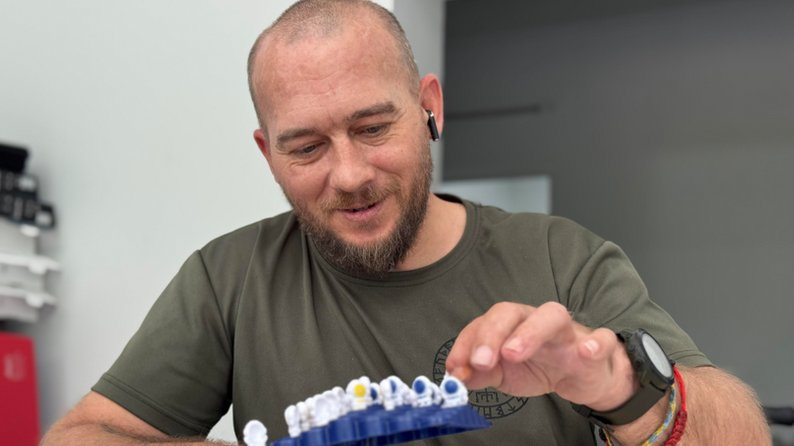 Військовослужбовець Ігор Яковенко. Колаж Суспільне Миколаїв/Яна Тітуренко 45-річний Ігор Яковенко на початку 2023 року добровольцем долучився до лав Збройних сил. Чоловік був гранатометником на Донеччині, а згодом у складі піхоти утримував позиції у Курській області. Після важкого поранення голови реабілітується та вчиться наново ходити.