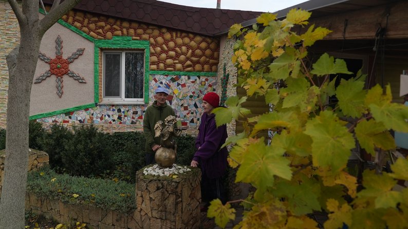 Подружжя стоїть біля власного будинку-писанки. Суспільне Миколаїв/Роман ВолинськийПонад два роки вважався безвісти зниклим: у Снігурівці попрощались із захисником Олександром Задорожнім