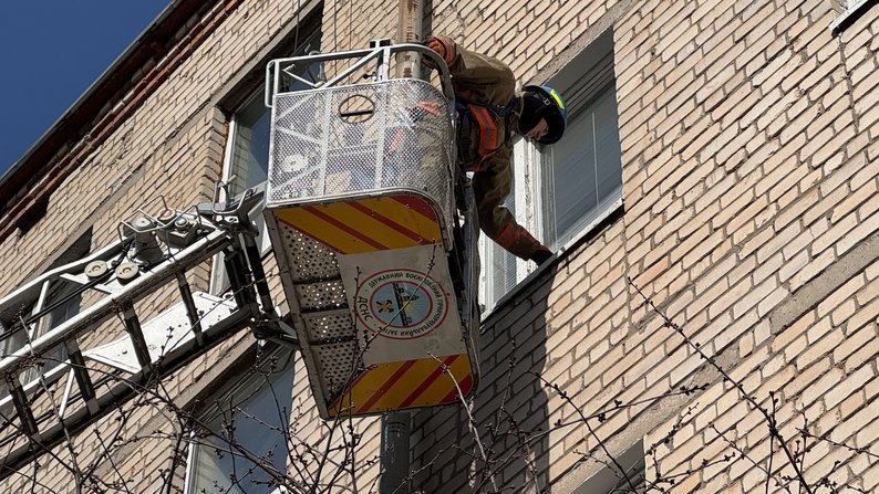 Рятувальник допомагає прибрати уламки скла. Суспільне Миколаїв/Олена Земляна
