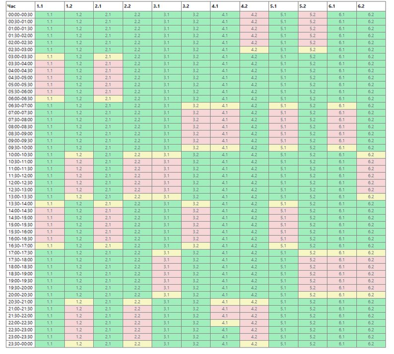 "Жовті" години на графіку означають час включення/відключення підчерг, а також період, коли електропостачання може бути відсутнім у разі збільшення обсягів обмежень", — повідомляють у відомстві.