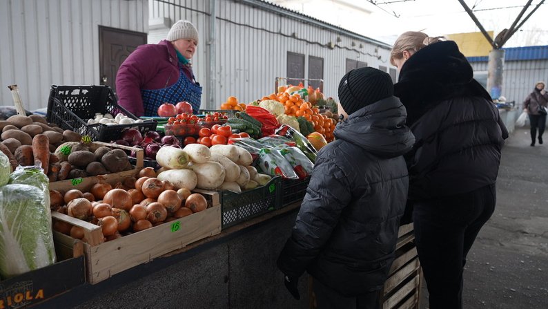Люди обирають продукти на ринку. Суспільне Миколаїв/Богдана Будулуца