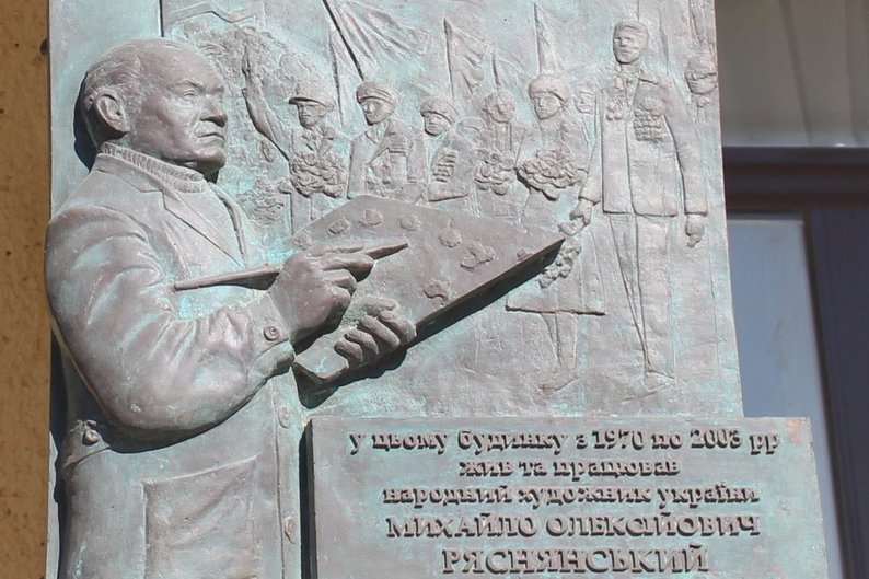 - народному художнику України Михайлу Олексійовичу Ряснянському (пр. Центральний, 96);