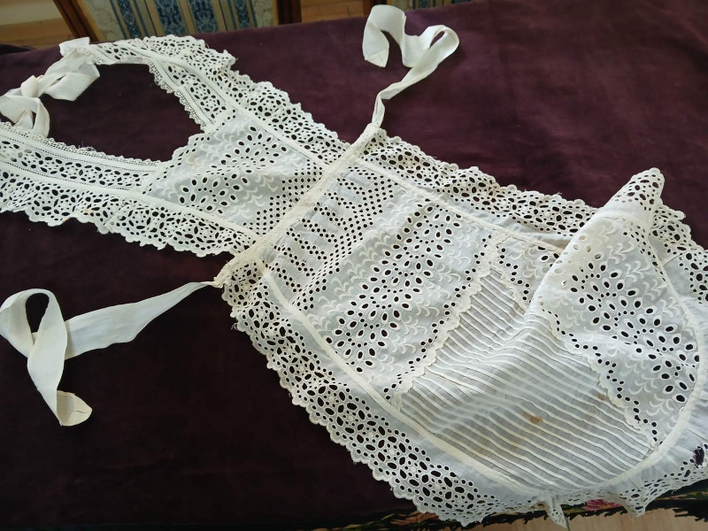 Натільна жіноча спальна сорочка                                      Миколаївський краєзнавчий музей                                                                                                                                                                                                                                                                                                                                                                               Святковий кухонний фартух                                      Миколаївський краєзнавчий музей