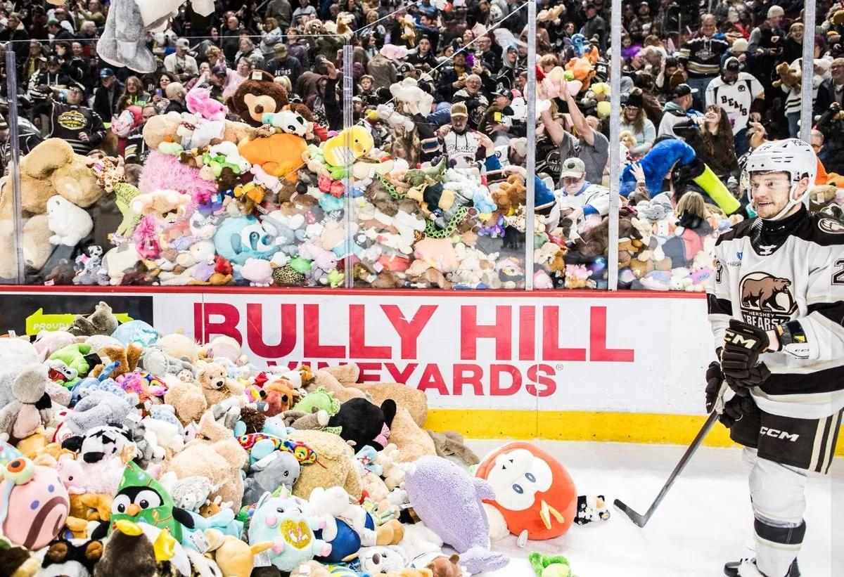Команда Hershey Bears встановила світовий рекорд, зібравши 102 343 м’яких іграшок під час благодійної акції “Teddy Bear Toss”. Іграшки будуть передані 35 місцевим благодійним організаціям.