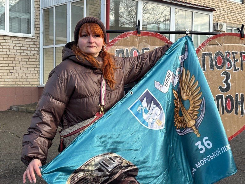 На акцію також прийшла дружина військовополоненого морпіха 36 ОБрМП Людмила Пухлікова.