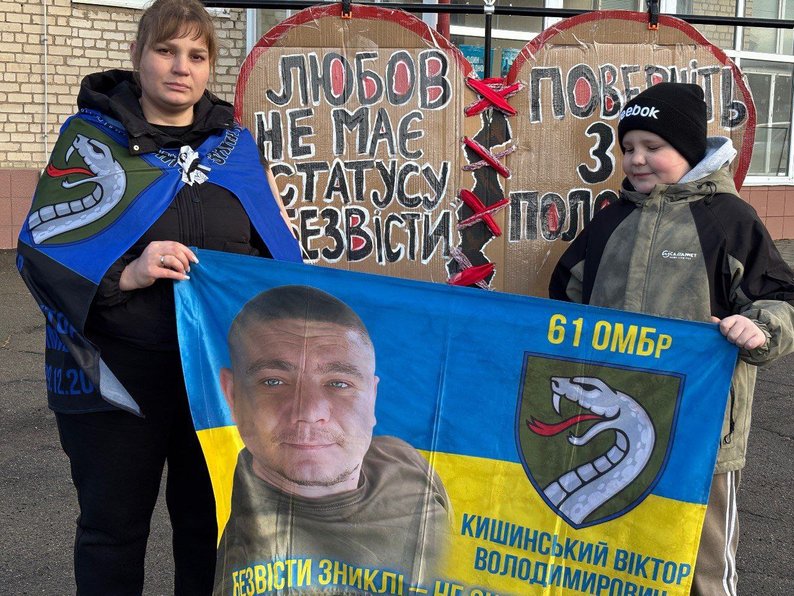 "Я виходжу на акції разом із сином, бо ми віримо, що він живий. Ми виходимо за всіх і боремося за нашого татка. Віримо. Чекаємо. Уже другий рік. Наша єдність — це наша сила".