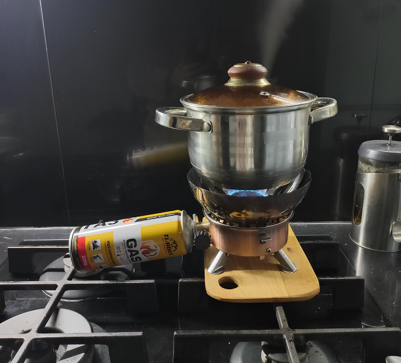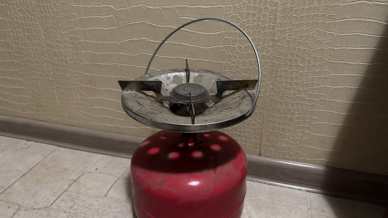 Переносний газовий пальник (зверху), встановлений на газовий балон. Суспільне Миколаїв/Юлія Голокоз