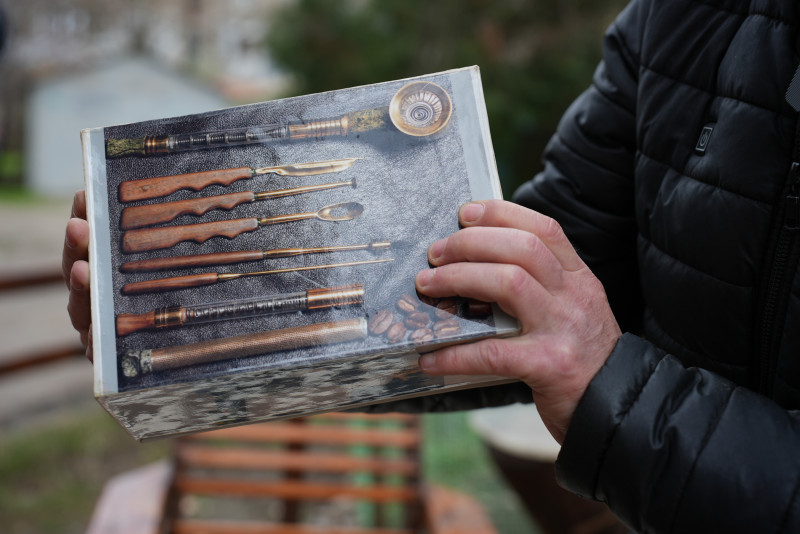 За словами чоловіка, для роботи він використовує лобзик та болгарку. Спочатку майстрував вироби зі своїх матеріалів, а пізніше деревину принесли люди.