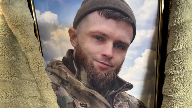 Портрет загиблого військового Олександра Гармаша. Суспільне Миколаїв/Юрій Островершенко У Первомайську, що на Миколаївщині, 30 березня попрощались з військовослужбовцем Олександром Гармашем. Військовий загинув під час бойового завдання на Харківському напрямку.
