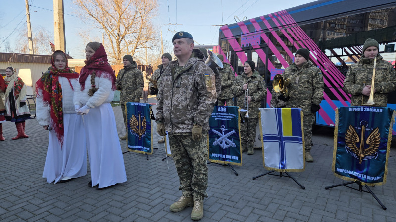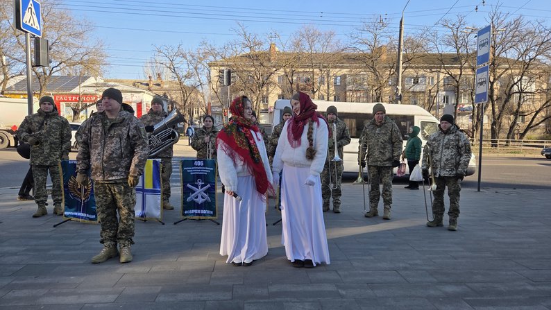 Захід організували до Різдва Христового, тому у музичному супроводі переважають колядки, говорить начальник оркестру і військовий диригент 406-ї окремої артилерійської бригади імені генерал-хорунжого Олексія Алмазова майор Віталій Мацюк.