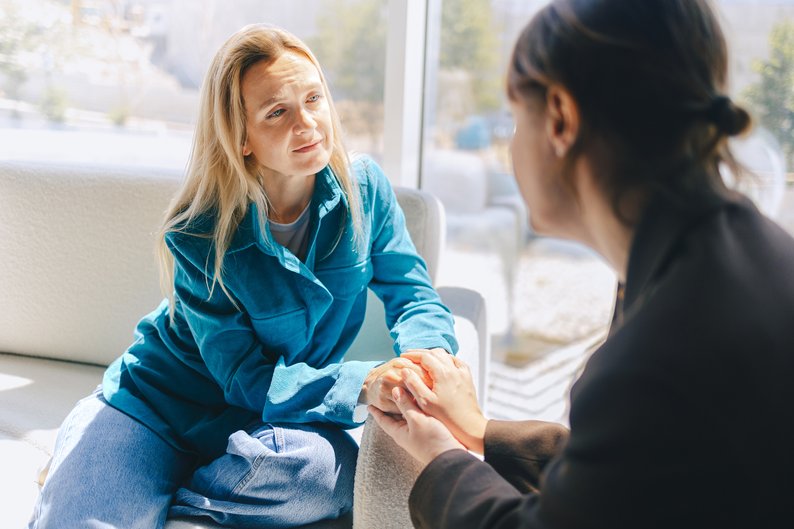 Жінка розмовляє з психологом. Getty ImagesСексуальне насилля, пов’язане з конфліктом (СНПК)