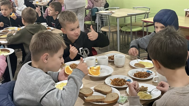 Діти їдять в шкільній їдальні, 23 жовтня 2025 року, Миколаїв. Суспільне Миколаїв/Аліна Ковальчук