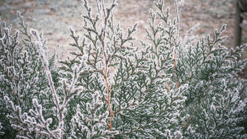 Гілки куща вкриті інеєм. Суспільне Миколаїв/Тітуренко Яна У Миколаївській області протягом 28 січня очікується хмарна погода. Також очікується ожеледиця на дорогах і туман. Температура повітря вночі становитиме від -3°С до +2°С, вдень повітря прогріється до +8°С.