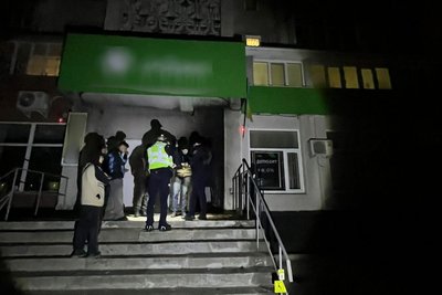Слідчі поруч із підпаленим відділенням банку. Миколаївська обласна прокуратура