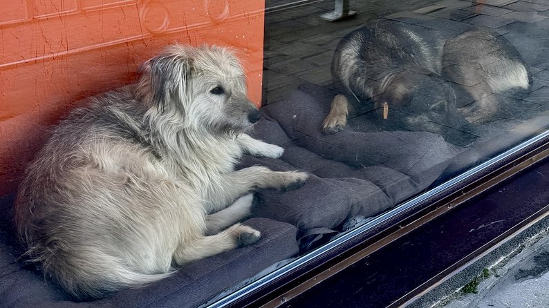 Собаки гріються у миколаївській кав’ярні. Суспільне Миколаїв/Валентина Гурова