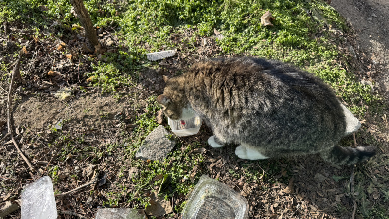 "Так їх загалом 5-6, котрих ми на постійній основі годуємо, водичку їм наливаємо та доглядаємо. Іноді очі крапаємо, самі розумієте, це кішки, які живуть на вулиці, то іноді їм треба допомога".