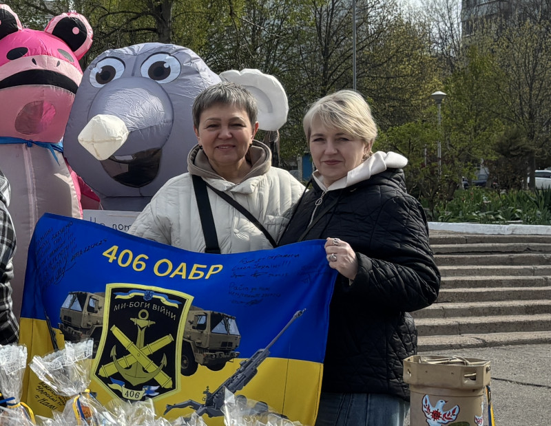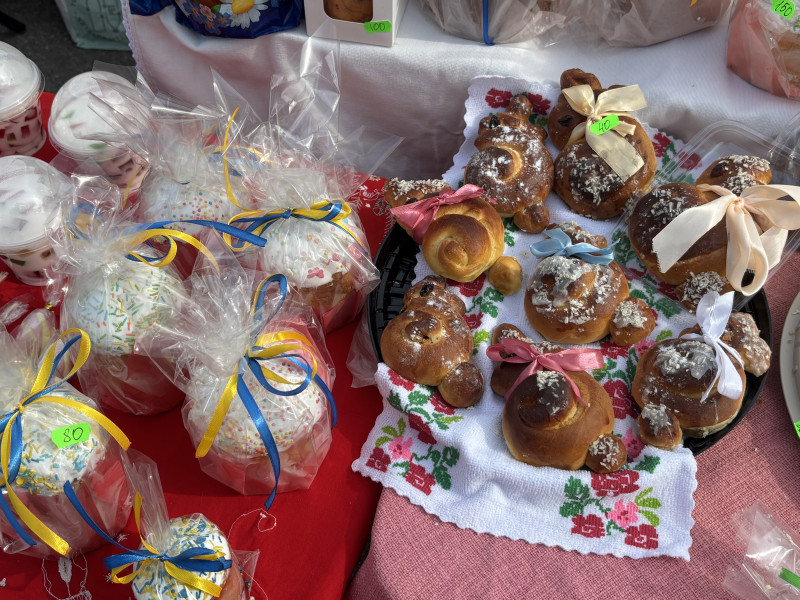 Великодній ярмарок у Південноукраїнську. Суспільне Миколаїв/Надія Ковтан У Південноукраїнську, що на Миколаївщині, 11 квітня відбувся ярмарок до Великодня. Гроші збирали на потреби ЗСУ.