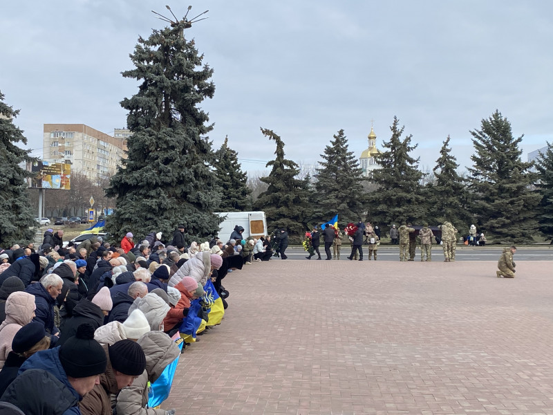 Місцеві жителі Південноукраїнська схилили голову перед полеглим Денисом Гальопою Суспільне Миколаїв/Надія Ковтан