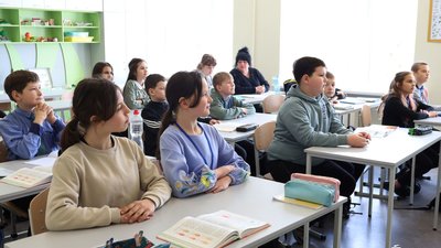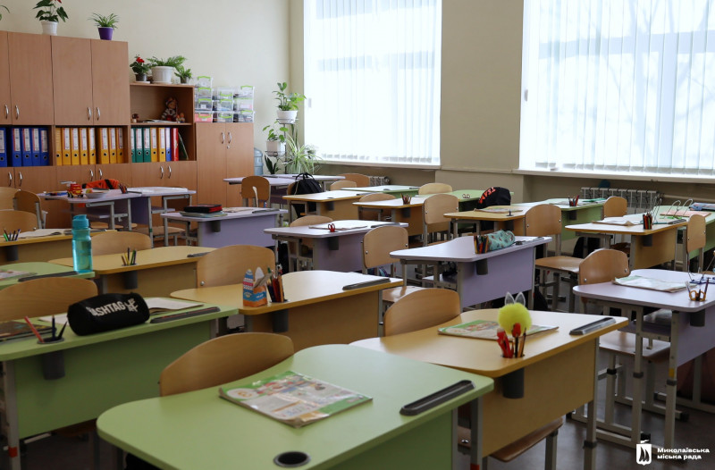 Учні в оновленому класі гімназії . Миколаївська міська рада В Інгульському районі Миколаєва відкрили гімназію, яка зазнала пошкоджень унаслідок російського обстрілу у 2022 році. Після відновлення заклад знову приймає учнів.